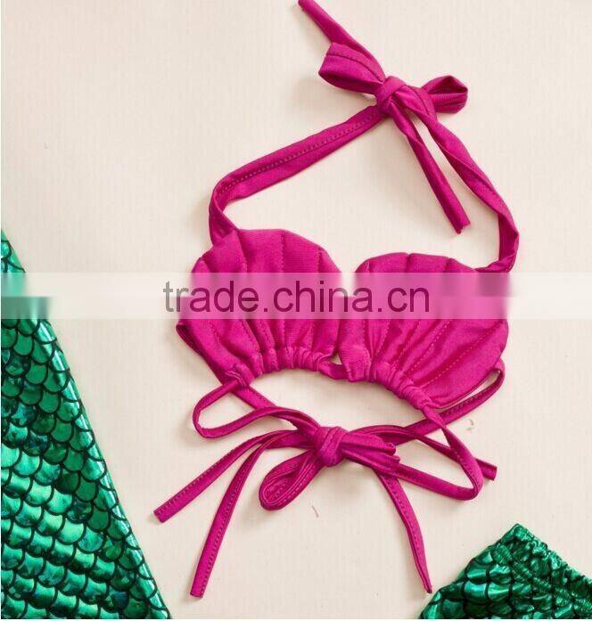 girls boutique mermaid sequins dress clothing sets shorts hot pink Bikini clothes with shorts pants and baby swing bathing suit