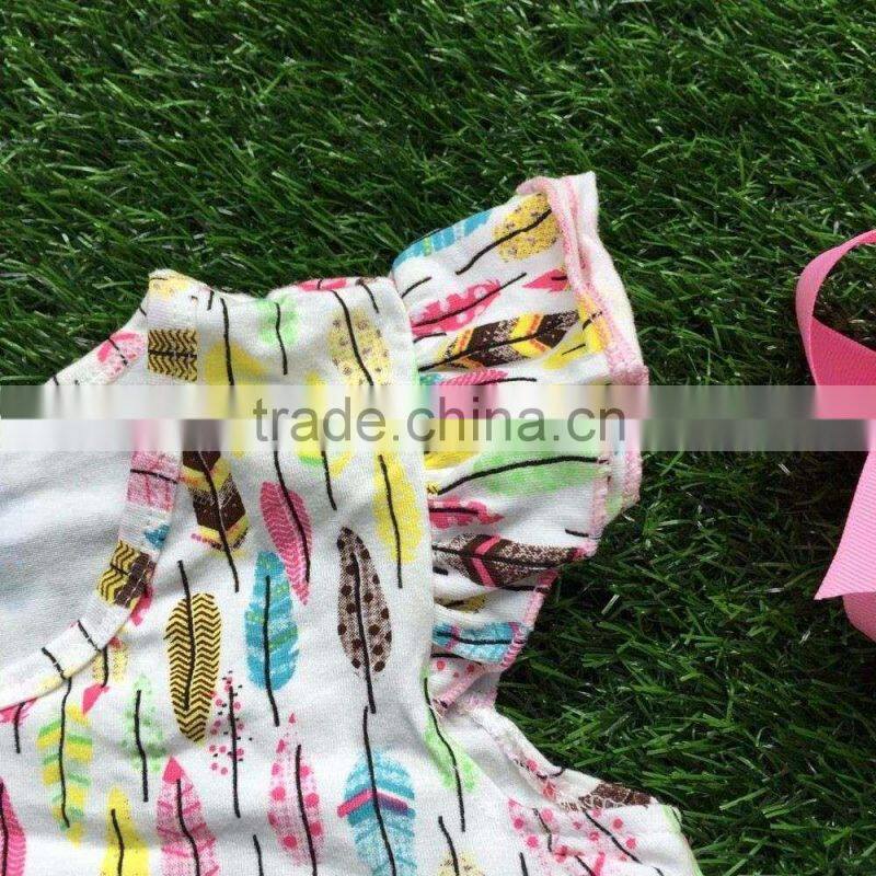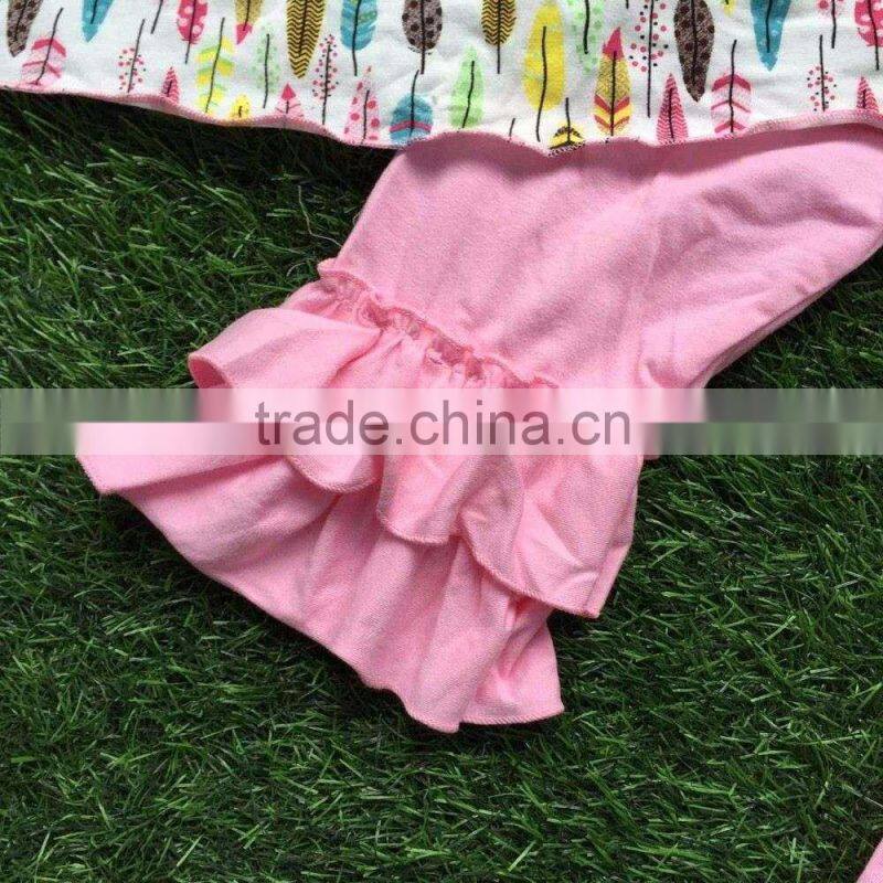 Free delivery girl summer clothing boutique clothes children pink feather clothing girl folds Capri Set hairhows