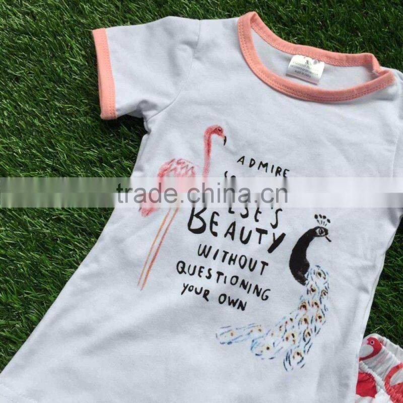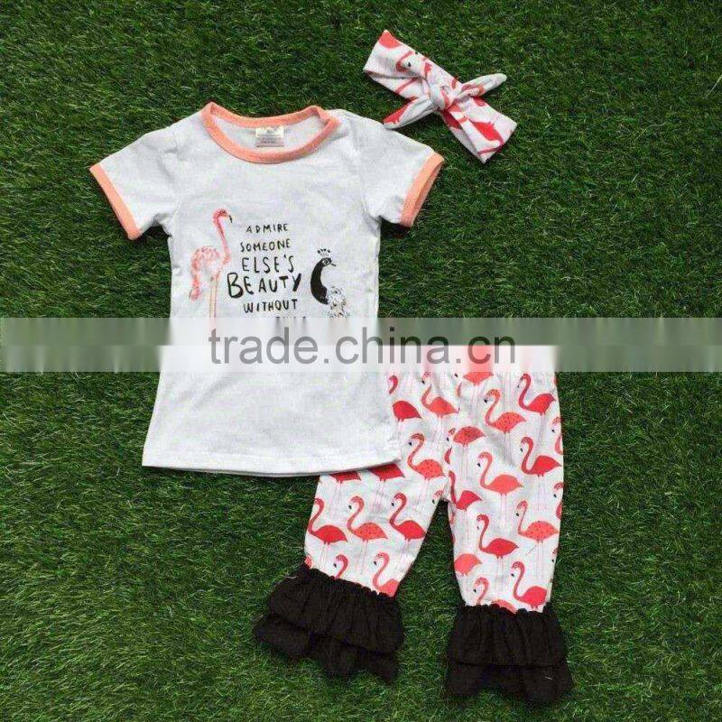 2016 Female Baby Flamingos and Summer Clothing Boutique Capri Peacock Children 1~9 Years Old Clothing Matching Headband