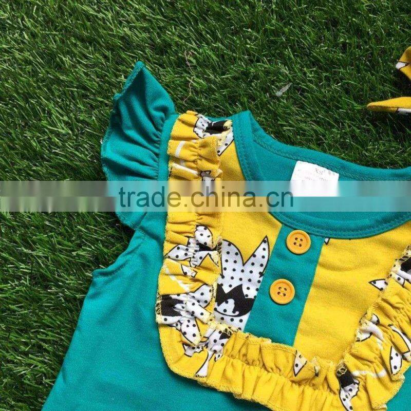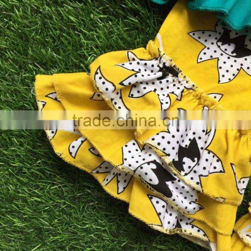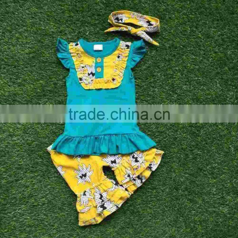 2016 free shipping summer Girls Shorts Set Baby Boutique yellow suit 1-9 year old girls clothing and accessories