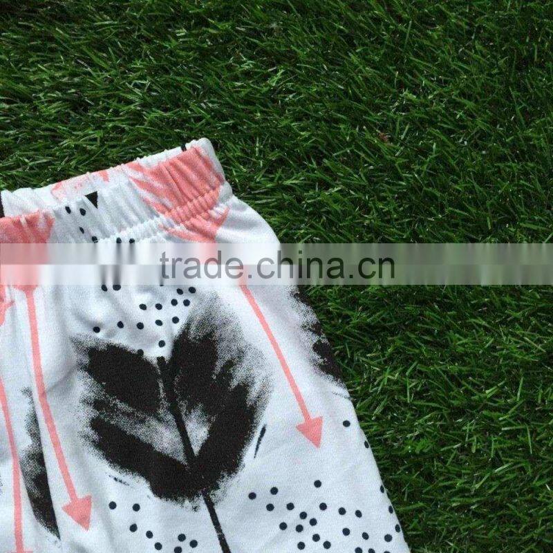 Home > Products > New Products > Baby Girls Boutique Summer Outifits I'm Sweet She's Wild Clothing Girl Short Sleeve Feather Ruffle Capri Sets With Accessories