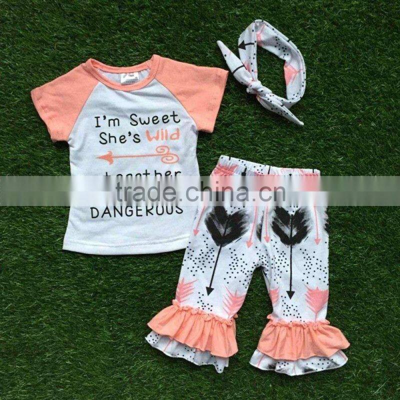 Girls Summer design baby girls boutique outifits I'm sweet she's wild together we are dangerous outifts clothing girl short sleeve Azect ruffle pants sets with accessories