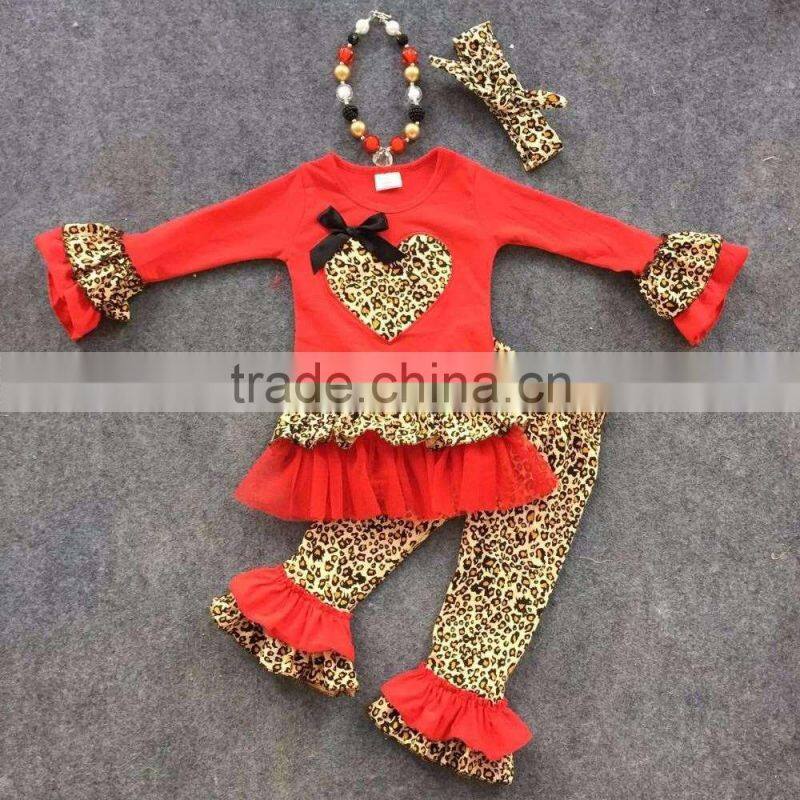 2016 New Baby Girls Spring Outfit Suit Red Leopard Top Kids Clothes With Matching Accessories