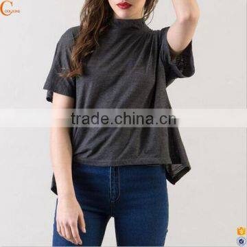 Wholesale Women Clothing Custom High Neck Tshirt With Slit at Back