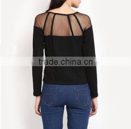 Two-color long sleeve t-shirt skin tight t shirt with net design