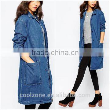 Product Name | Hot sale unlined denim coat fashion point collar non stretch women coat 2015 |