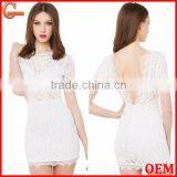 High Quality Short Sleeve Out Mini Lace Sexy Evening Dress