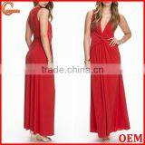 Sexy Deep V Neck Knot Front Evening Gown Ladies Long Evening Party Wear Gown