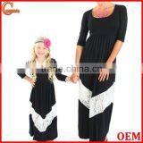 Latest 3/4sleeves Back White Mother and Daughter Dress Design Mommy and me Maxi Dress 2016