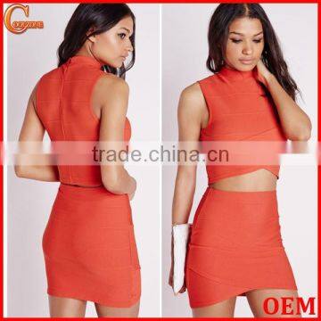 Wrap Over Sleeveless Bandage Design Two Piece Evening Dress