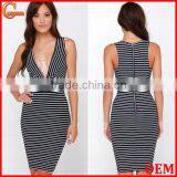Stylish Stripe Dress Deep V Neck Bodycon Fit Sexy Dresses