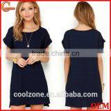 2015Latest Ladies Western Dress Designs Roll Sleeves Shift Dress for Women