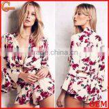 High Quality Sexy v Neck Long Sleeve Garden Print Lady Dress