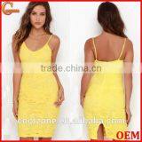Hot Seller Sleeveless Midi Dress Sexy Yellow Midi Lace Dresses