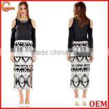 Fashion Cold Shoulder Design Long Sleeve Summer Dress for Mature Woman