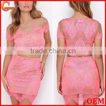 Sexy delicated mesh bodycon fit two piece prom dress lace prom dresses |