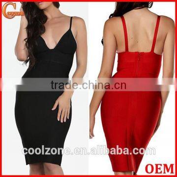 Spaghetti straps plunging neck bodycon fit bandage dress 2015 |