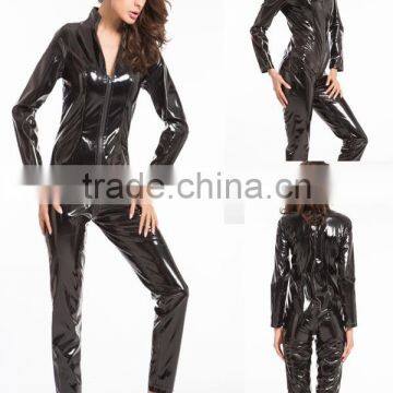 Walson Clothes Apparel Stylish Black Zipper Closure Fau Leather Catsuit