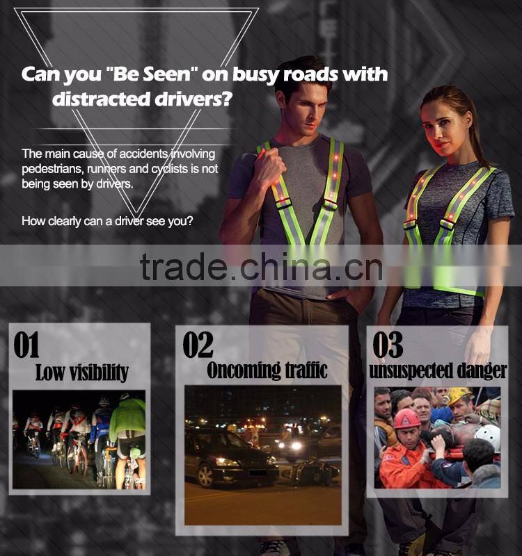 Glowing or Flashing Safety Harness/led Light Belt/fabric for Reflective Vest