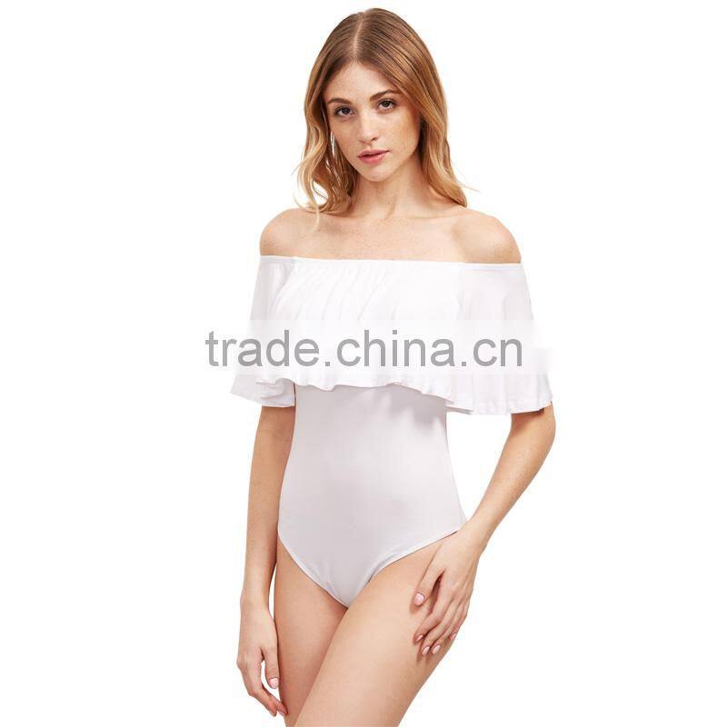 Flounce off shoulder stretch bodysuit hot design lady clothing