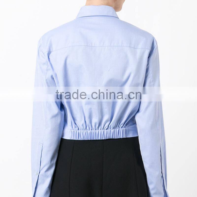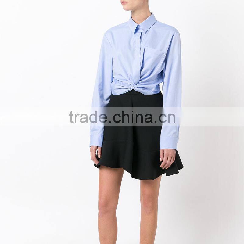 Twist new design plain blue blouse for women long sleeve shirt