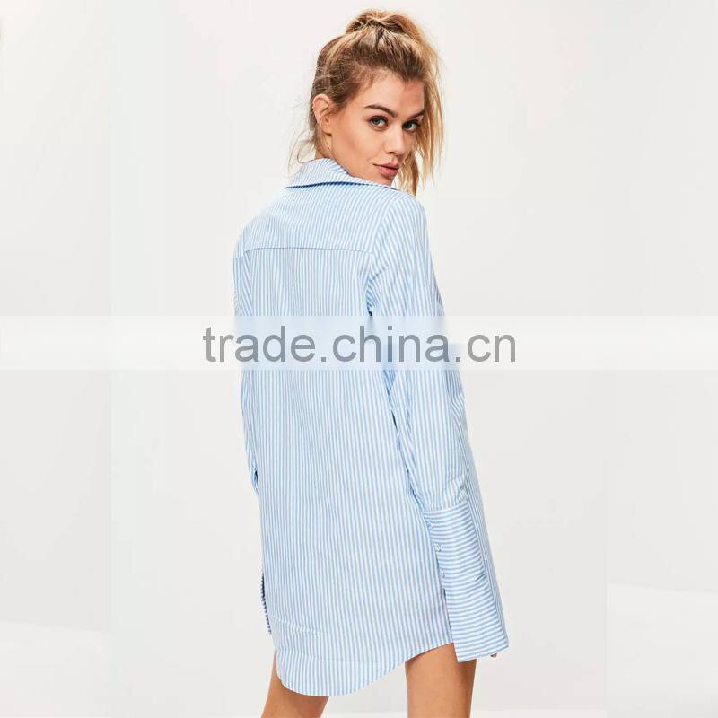 Simple fashion style casual bf shirt lady long sleeve striped blouse
