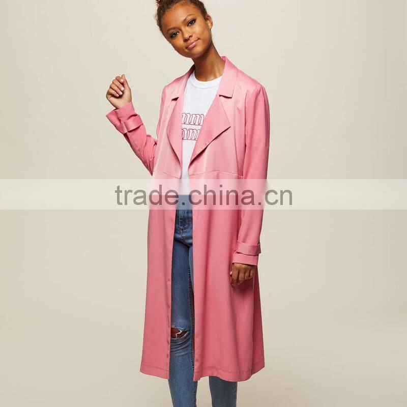 Lapel collar women's long windbreaker latest winter autumn pink trench coat