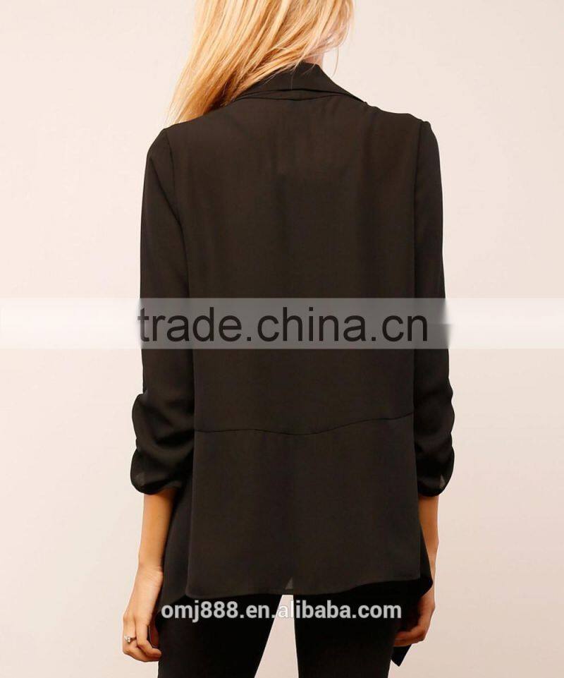 high fashion women black ruched sleeve blazer
