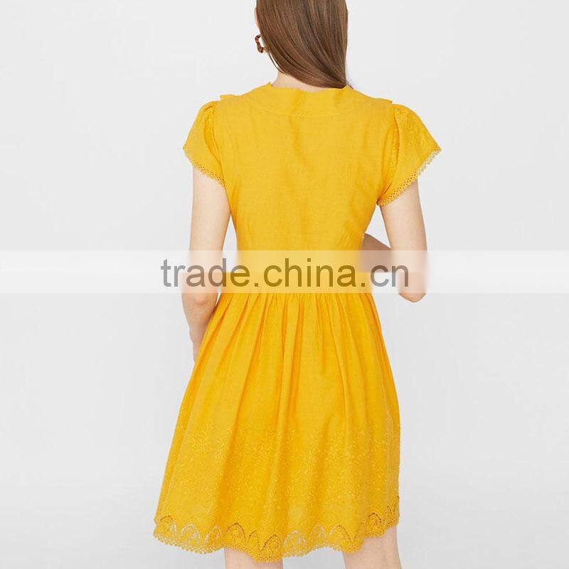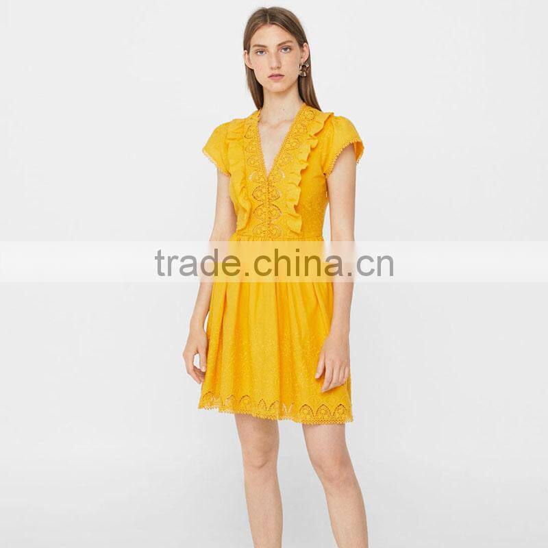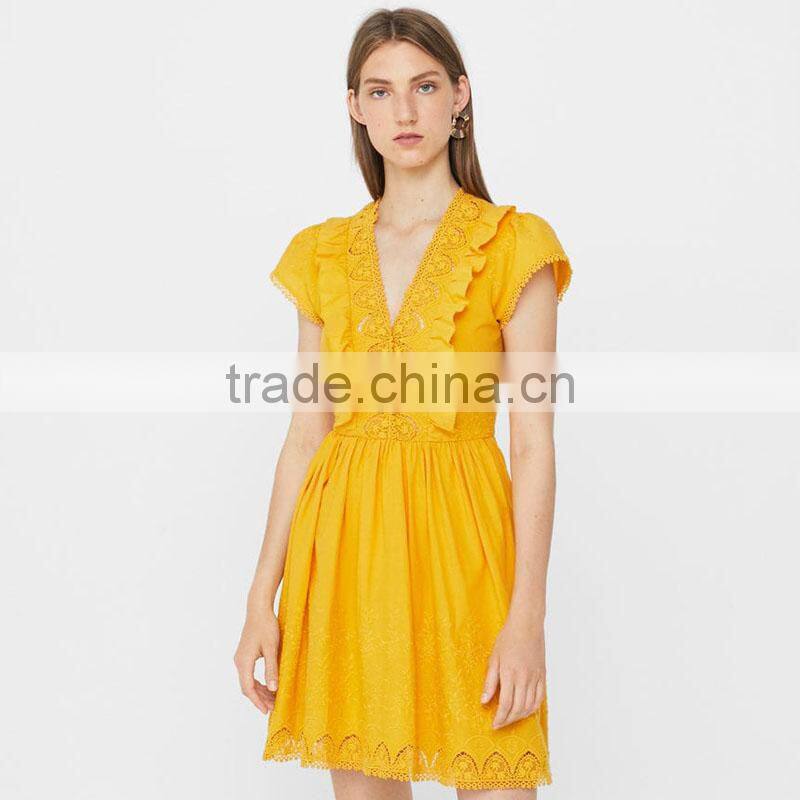 Embroidery cutwork cotton dresses ladies crocheted fit and flare short dress