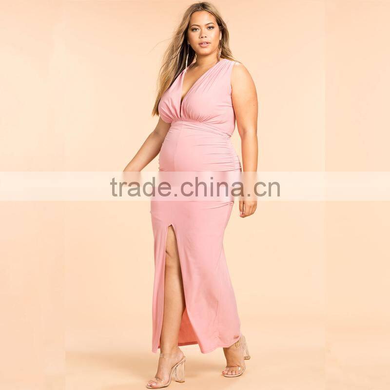 Plunge neck sleeveless plus size maxi evening dresses for fat ladies