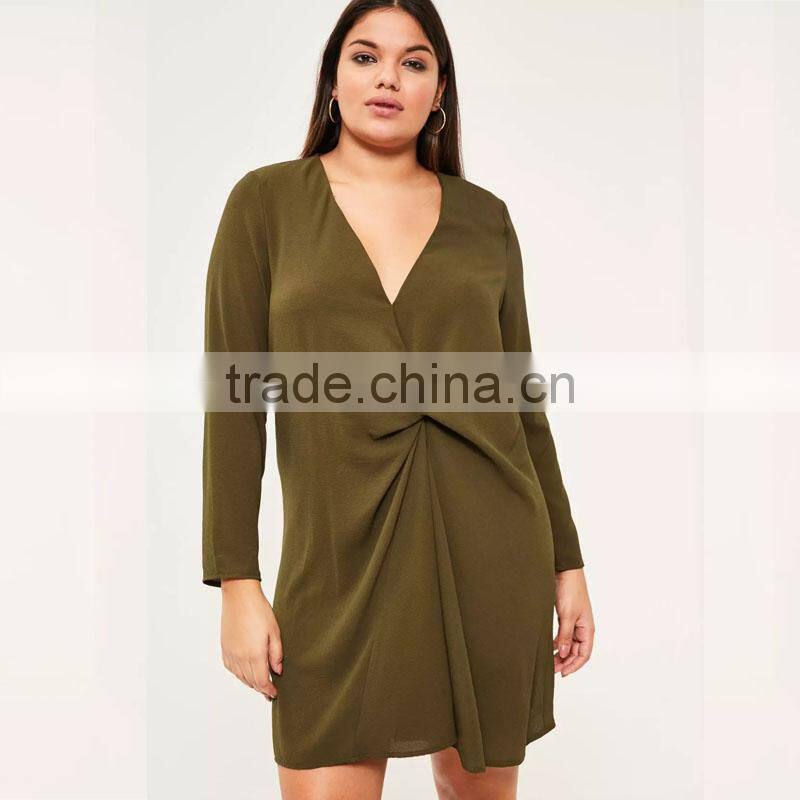 Olive green long sleeve short dresses 7xl plus size fat lady clothing