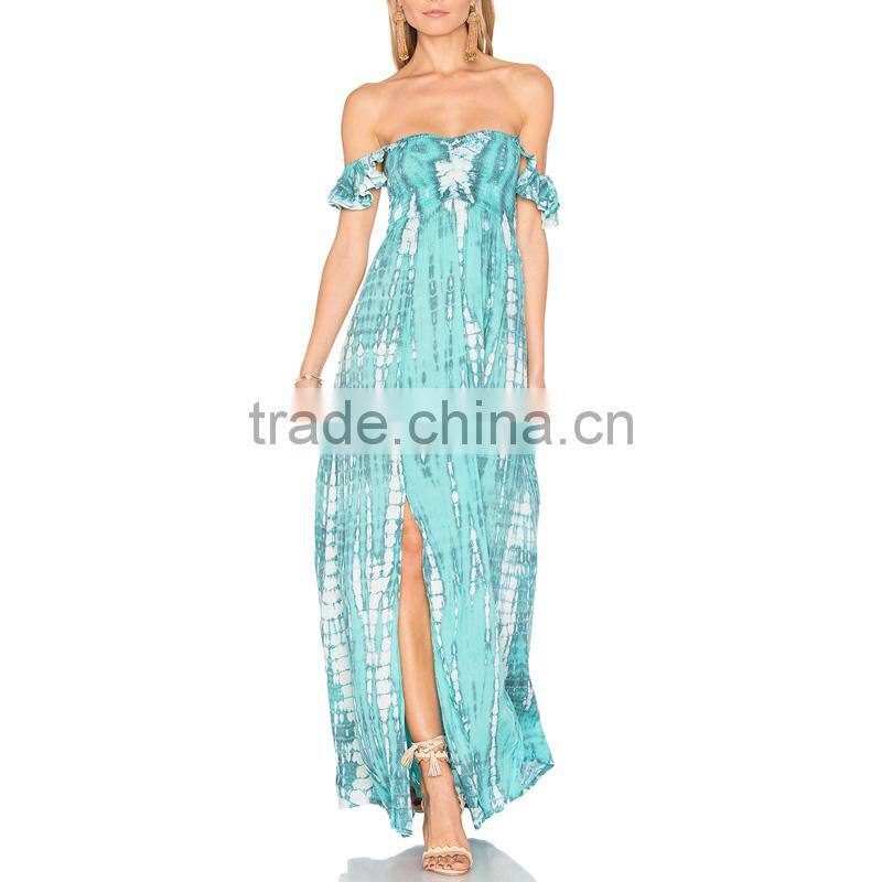 Flutter Sleeve off Shoulder Bohemian Maxi Dress Tie Dye Boho Clothing