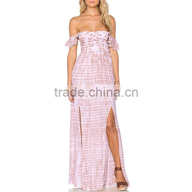 Flutter sleeve bohemian tie dye maxi dress with slits woman boho clothing