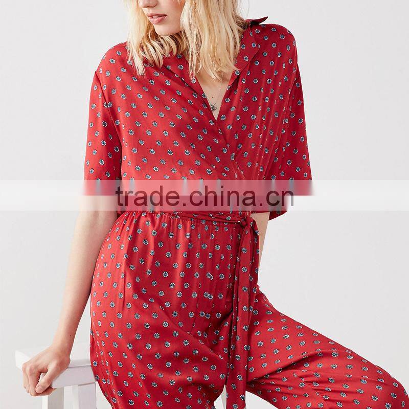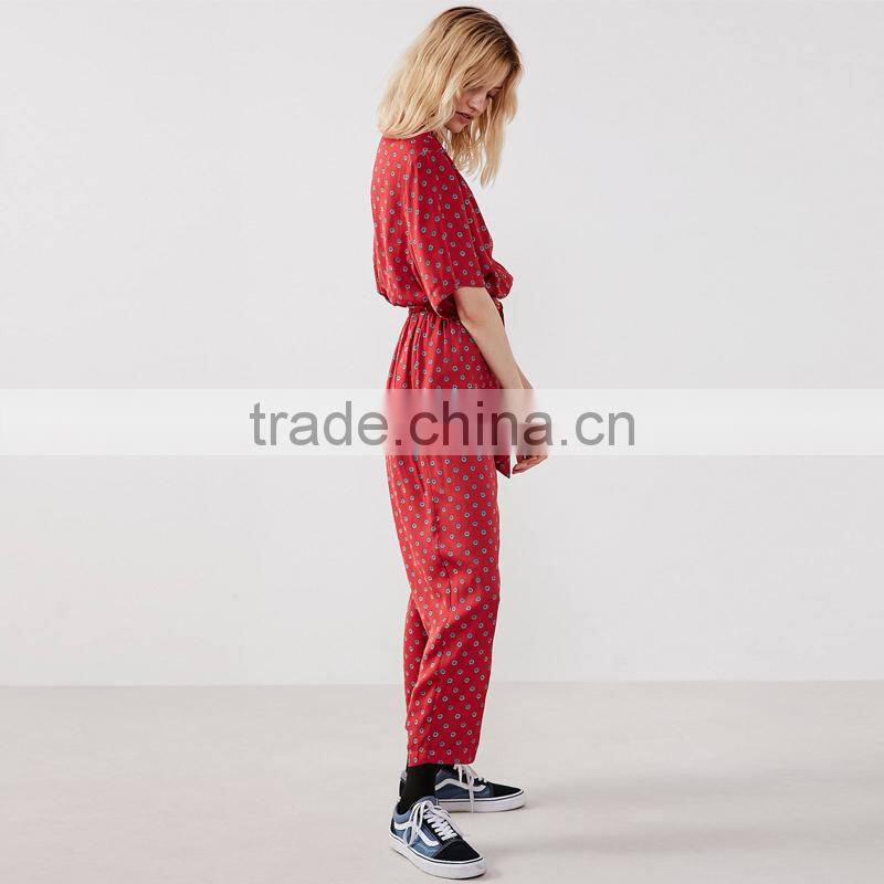 Vintage touch wrap over half sleeve printed peasant jumpsuit for lady