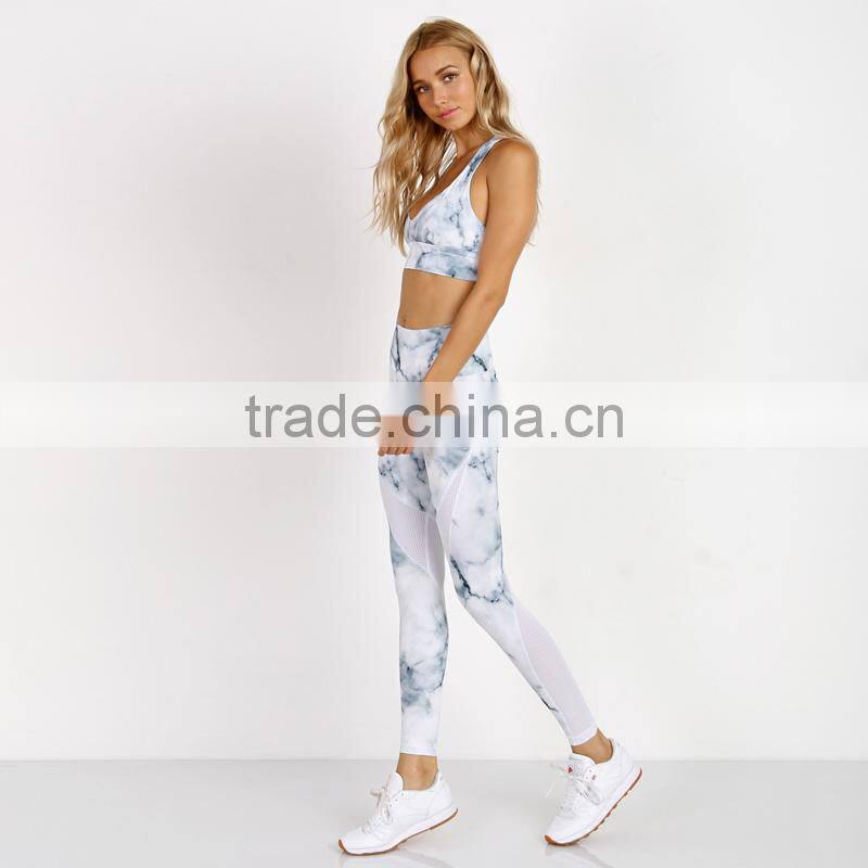 Stretchy tie dye workout sweat suit for women crop tank top and leggings