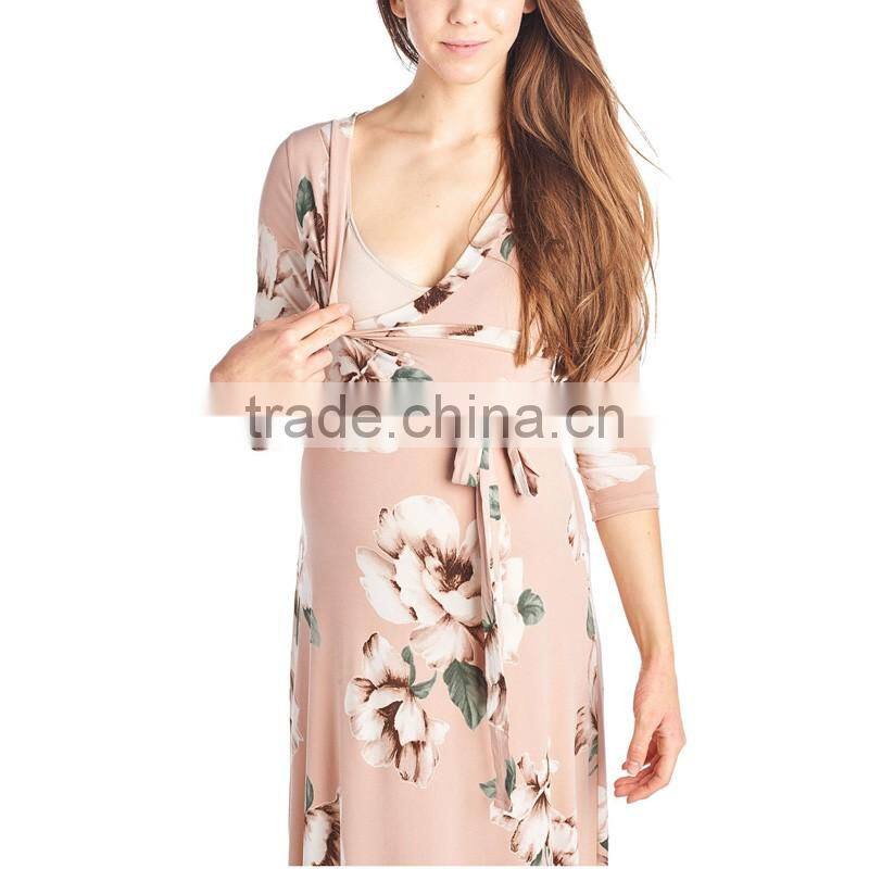 2017 OEM Hot Lady Sexy Floral Photo Maternity Nursing Wrap Dress