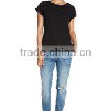 Black Jersey Cuffed Sleeves Custom Tee Shirt Blank