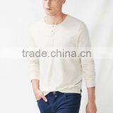 Men Long Sleeves Slub Cotton Henley T-shirts With Side Slit Hem