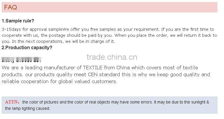 We have been specializing in household products, home texitles, such as bathrobe, towels, baby blankets for years. Our products are mainly made of natural materials such as 100% cotton, microfiber, bamboo to create natural and comfortable hand feel for our users. It will also make you healthy and beautiful.