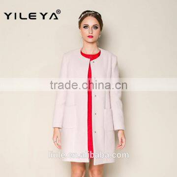 2015 latest fashionable o neck apricot plain style brand name women winter coat |