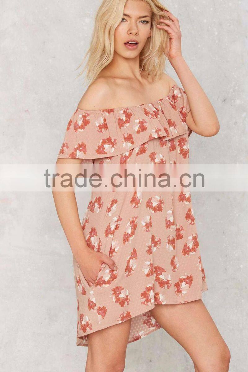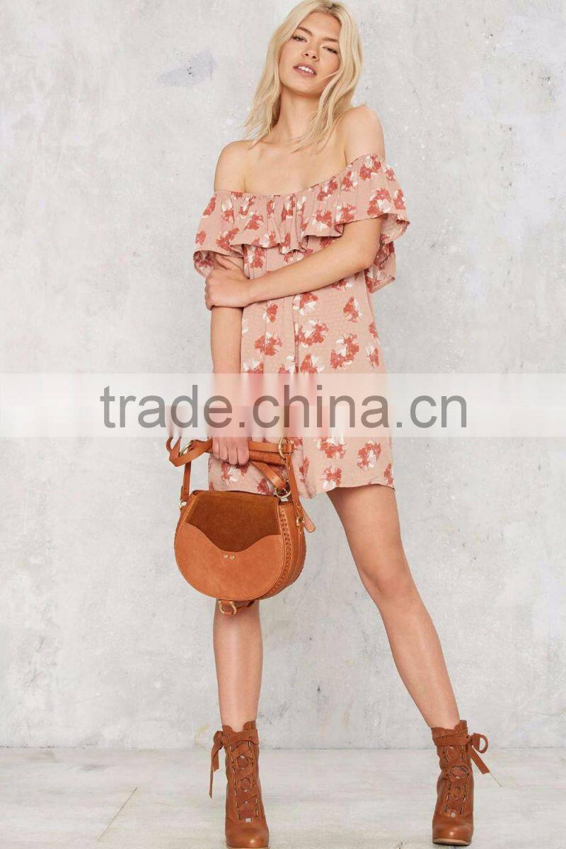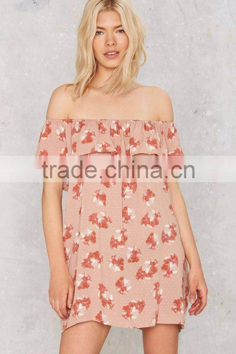off Shoulder Floral Cute Women Summer Dress With Ruffles