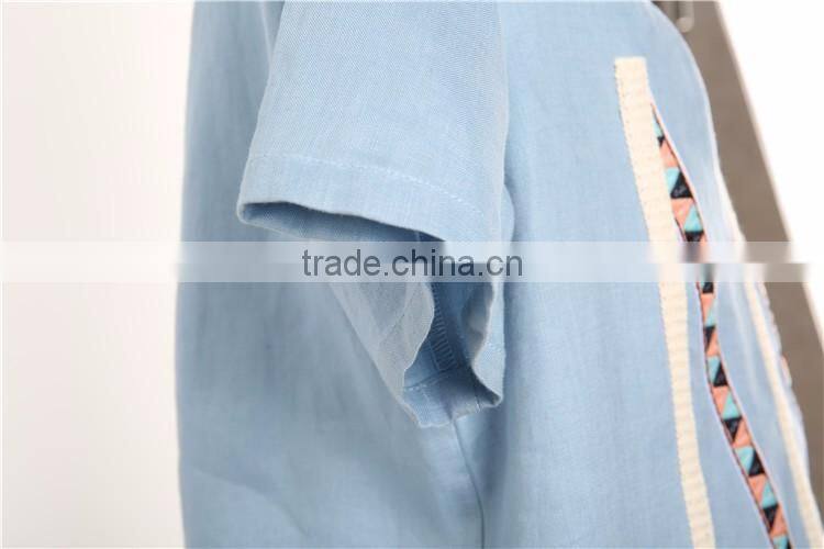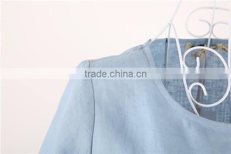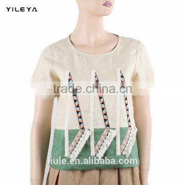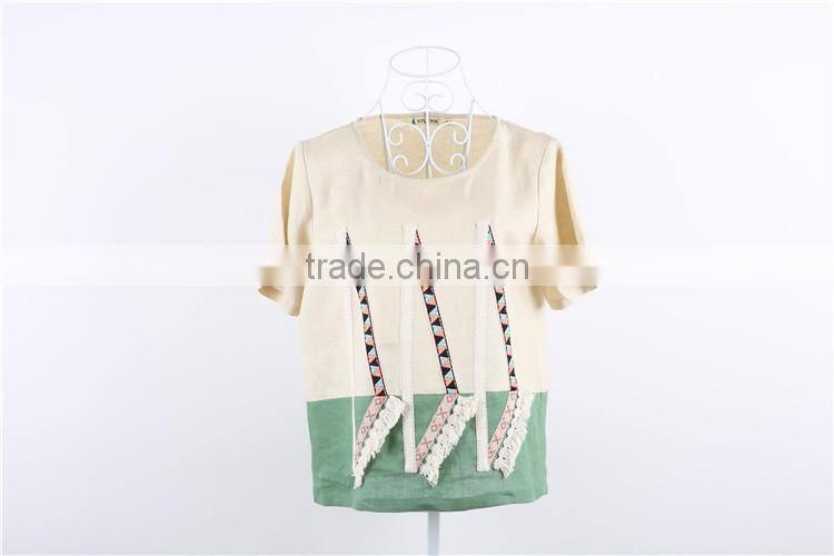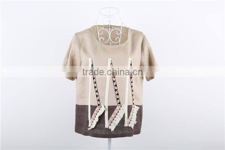 Different Colors High Fashion Embroidered Women 100% Linen t Shirt