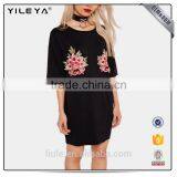 Short Sleeve Summer Women Black Embroidery Dress Design
