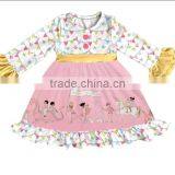 Boutique Baby Girl Clothes Custom Ruffle Sleeves Dress Tunic Princess Pattern Children Clothing