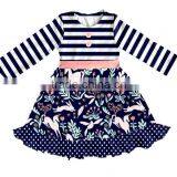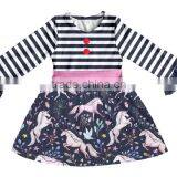New Design Kids Unicorn Print Dress Remake Boutique Fall Stripe Frock Design for Baby Girl