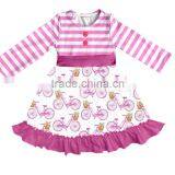 New Fashionable Little Girl Clothing Sleeved BIKE PATTERN Cloth Skirt Frock Design Baby Girl Cotton Dresses