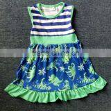 Kids Boutique Dress Dinosaur Pattern Bottom Clothes for Girl Children Skirt With Dark Blue Stripe