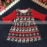 Fashion Kids Long Sleeves Frocks for Christmas Girl Cute Reindeer Print Dress in Fall