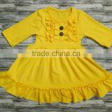 Fashion Kids Yellow Color Frocks Designs Baby Girl Cotton Dresses in Fall