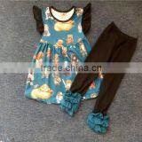 2017 wholesale wholesale kids boutique ruffle outfits bird girls pearl tunic clothing sets baby clothes